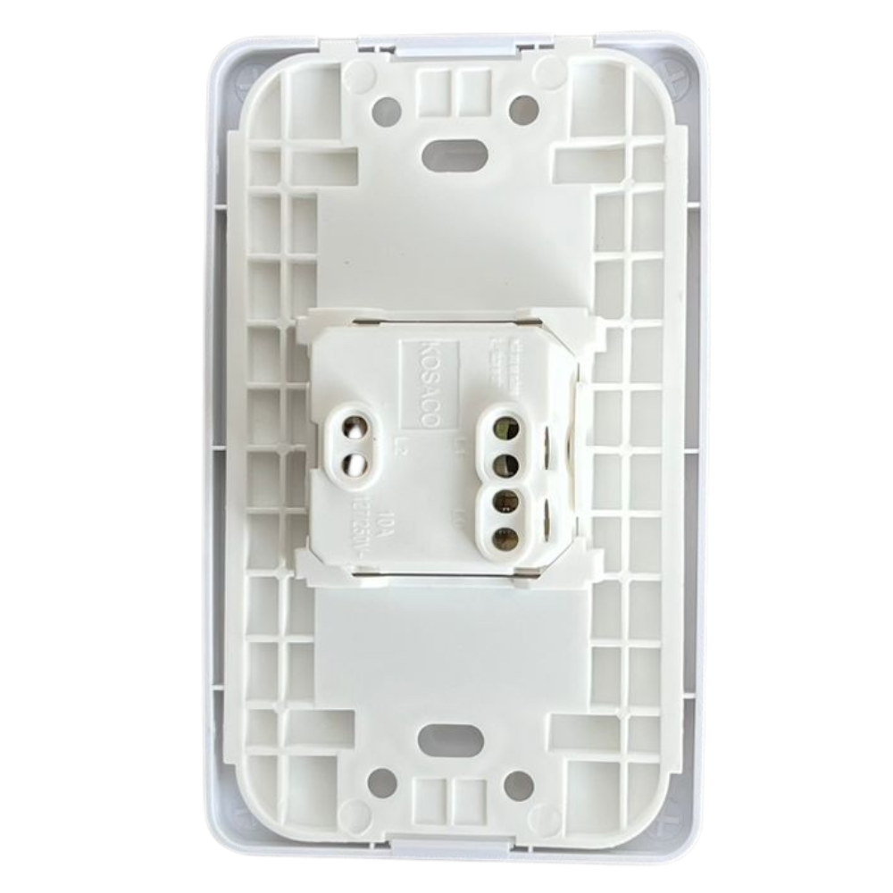 Agrega funcionalidad y diseño limpio a tus espacios con este interruptor sencillo blanco marca Kosaco, ideal para uso residencial o comercial. Su diseño moderno y compacto lo hace perfecto para controlar dos puntos de luz desde un solo módulo.